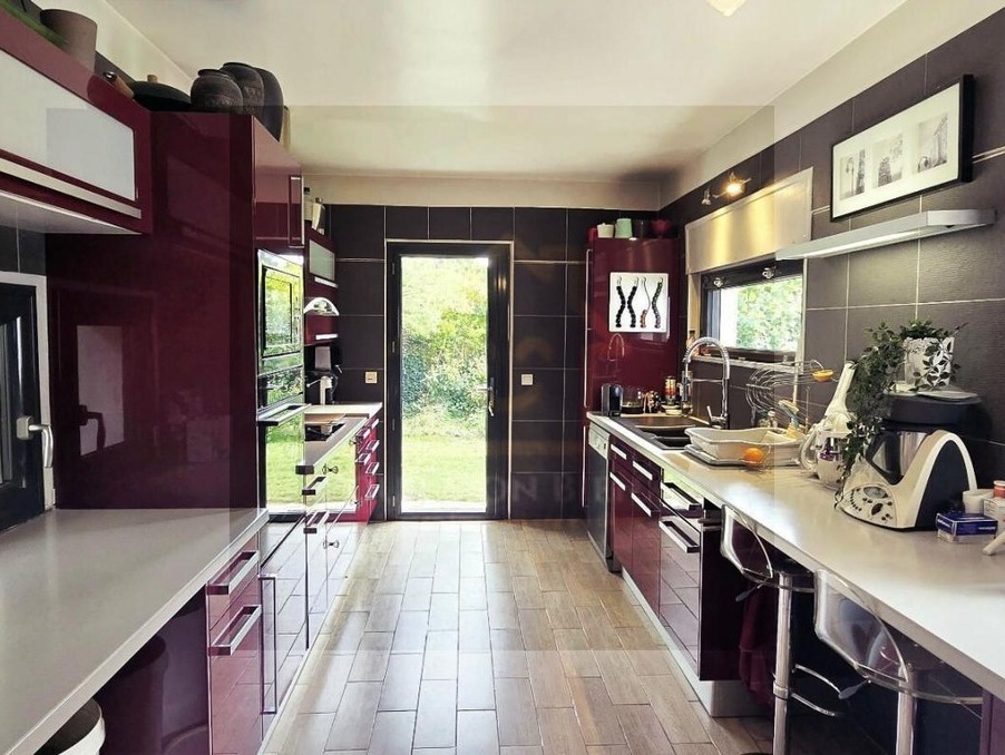 Alexandre COLLO vous propose ce bien :L'agence POURMONBIEN by Alexandre COLLO est ravie de vous présenter cette Maison d'architecte, construite à ''l'américaine'', entièrement de P/pied et située tout proche d'Epernon, de sa gare et de toutes ses commodités. Dans un écrin de verdure cette demeure propose une vaste pièce de vie de + de 70m² , 5 chambres et 3 salles de bain,Au c½ur d'un environnement très recherché et au calme, découvrez cette propriété d'exception offrant de superbes volumes, une belle luminosité et un cadre de vie familial idéal. Dotée d'un DPE D, de fenêtres double vitrage et d'une pompe à chaleur , elle allie confort, fonctionnalité et prestations rares à deux pas des transports et des écoles.Les atouts majeurs- Situation premium : proche gare pour des trajets faciles, proche centre-ville et commerces, écoles primaires et collège accessibles, sortie d'autoroute à proximité.- Environnement : calme, verdure, exposition favorable, grande intimité.- Vaste parcelle arboré avec piscine couverte et bord de rivière- Volumes de vie : grand séjour convivial, 8 pièces dont 5 chambres pour accueillir famille et télétravail.- Confort et praticité : 3 salles de bain, assainissement tout-à-l'égout, entièrement habitable en rez de chaussée.- Stationnement exceptionnel : 3 garages fermés + 4 places de parking.Pourquoi cette propriété atypique ?Un bien rare réunissant emplacement, calme, volumes et potentiel sur une grande parcelle. Parfait pour un artiste, une famille en quête d'espace, de verdure et d'accessibilité, ou pour des acquéreurs souhaitant une résidence de prestige unique.Contactez-nous au 07.66.71.28.28 pour organiser une visite et découvrir cette adresse d'exception.\nLes informations sur les risques auxquels ce bien est exposé sont disponibles sur le site Géorisques : www.georisques.gouv.fr